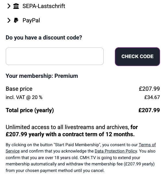During the registration process, you can select your preferred payment method.